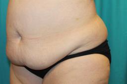This 56 year old patient was unhappy with her abdominal profile, and wanted to get rid of the skin flap. She wanted her clothes to fit better. Upon examination, her abdominal muscles did not need tightening, so the surgical plan was an extended moderate abdominoplasty (without muscle tightening) with hip liposuction. A total of 2980 g of tissue was removed in the abdominal pannus. Liposuction removed a total of 2200 mL of fat.