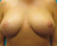 The most common problem encountered in a breast lift with implants done in one stage is the effect of the implant on the tissue. Patients can expect an optimal result when the tissues are very good and a small implant is used. In cases where the muscle is thin, the sheer pressure of the implant will further stretch, thin, and deform the skin.