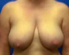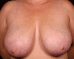 After the incision is made, the nipple (which remains tethered to its original blood and nerve supply) is then repositioned. The areola is reduced by excising skin at the perimeter, if necessary. Underlying breast tissue is reduced, lifted and shaped. Occasionally, for extremely large pendulous breasts, the nipple and areola may need to be removed and transplanted to a higher position on the breast (free nipple graft).