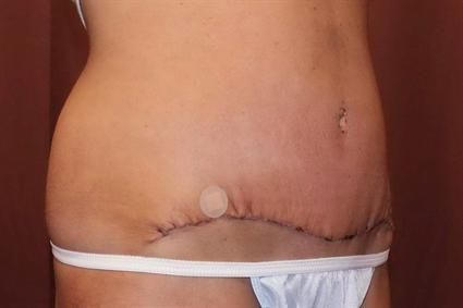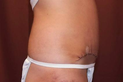 Patient had a moderate abdominoplasty under RN sedation, minor liposuction to remove 100 grams of fat, and a resection of the abdominal pannus 836 grams.