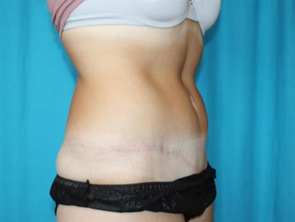 This 40 year old female patient had a previous C-section that resulted in scarring and an overhanging skin flap that she wanted removed. Dr. Janssen performed a drainless moderate abdominoplasty (without muscle tightening). The patient is very happy with her results.