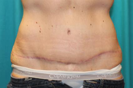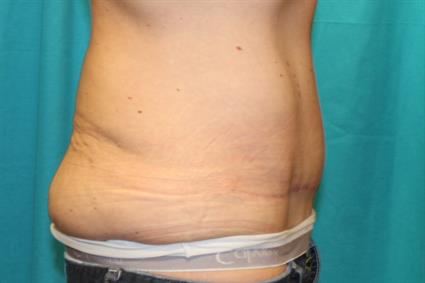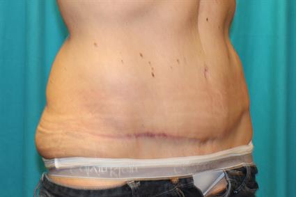 This 50 year old female patient had a gastric sleeve implanted the previous year, which resulted in a large weight loss. Unfortunately, this left her with excessive loose hanging skin. After her consultation with Dr. David Janssen, she opted for an extended abdominoplasty and a formal brachioplasty to address her issues on the abdomen and arms. In surgery, Dr. Janssen resected her abdominal pannus, which weighed 1200g. Liposuction on her arms yielded 100g of fat from her right arm and 75g on her left arm. 192g of tissue was resected from the right arm and 162g from her left arm. These procedures removed bulk and tightened her skin. These photos are post 4 months.