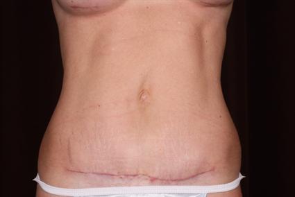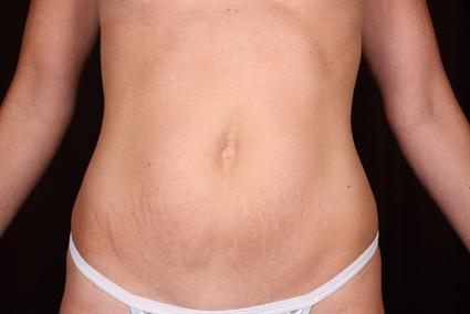This thin patient wanted excess skin excised from her abdomen. Her muscles did not need tightening, and there was not much fat. The patient had a mini abdominoplasty. See case number 78 in the Breast Augmentation section to see breast photos.