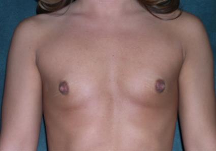 Patient went from a “A/B” cup to a large “C” cup with 375 cc silicone gel implants in a submuscular placement. Post-Op photo was taken two months after surgery.