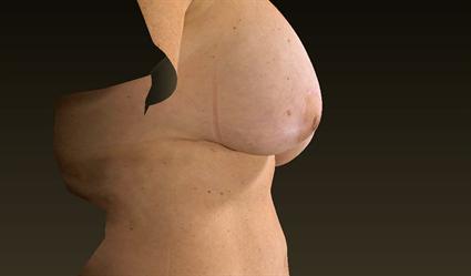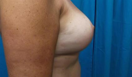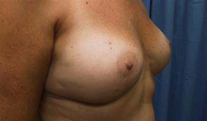 Patient had a breast augmentation 9 years ago, and now wanted her silicone breast implants removed. She was tired of having larger breasts, and wanted smaller, more demure breasts at this point in her life. She had significant weight gain since the original breast augmentation. The right implant now sat higher than the left implant and felt tighter. Dr. Janssen removed her intact 300mL Mentor textured round implants, and performed a vertical periareolar breast lift on the patient.