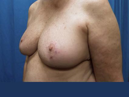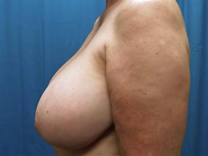 This 62 year old patient had complained of pain in her neck and shoulders, shoulder strap marks, difficulty with exercise and headaches due to her oversized breasts, which were a 34FF. Insurance covered her breast reduction, in which 1048 grams were reduced from the right side, and 1084 grams from the left side. The patient desired to be a small C cup after the reduction.