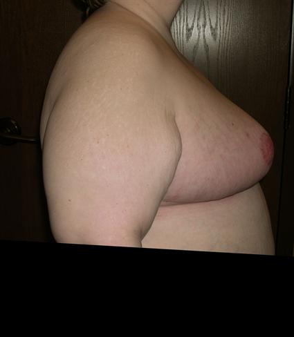 This 49 year old patient had overly large breasts which were causing her pain and discomfort. Significant tissue was removed to return mobility to the patient. She had a Bilateral Breast Reduction with a free nipple graft.