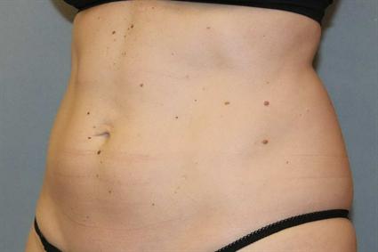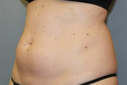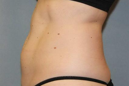 Patient had gained 14 pounds in the last two years, and wished to have a smaller abdomen. She received three applications to her abdomen: one large applicator to her upper abdomen and two small applicators to her lower abdomen. After two months, her abdomen was smaller in spite for going from 132 pounds to 134 pounds. She was so satisfied with her result that she opted to have Coolsculpting done on her back flanks next.