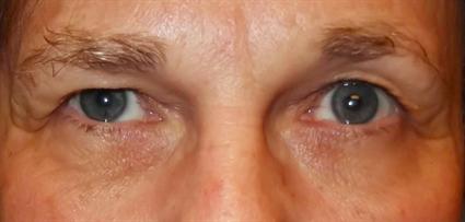 This patient had droopy eyelids, and opted for a cosmetic bilateral upper blepharoplasty. No fat pads were removed.