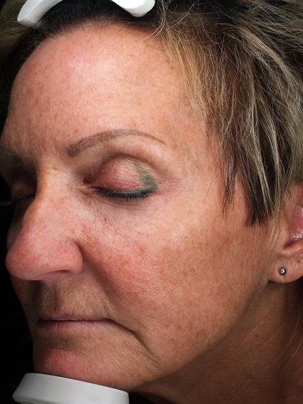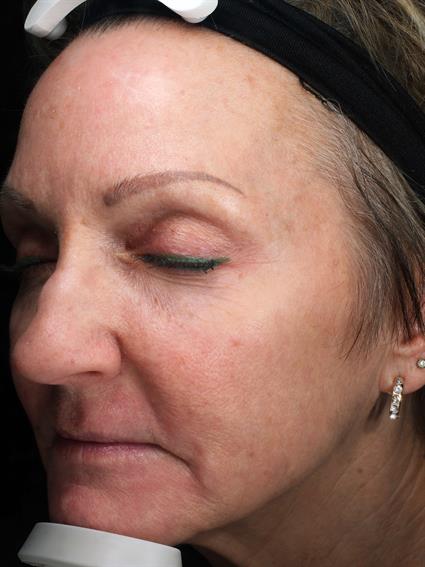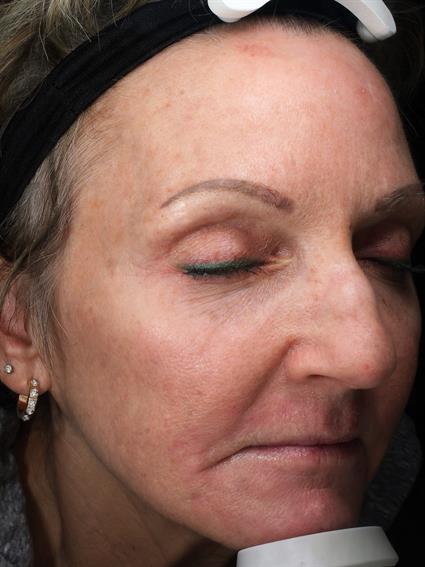 This 66-year-old female presented with concerns of intrinsic and extrinsic aging, including superficial and deep UV damage, textural irregularities, and fine lines and rhytids. Her primary area of concern was the perioral region, where she noted prominent lines and wrinkling.She underwent a full-face treatment with the Sciton HALO with focused perioral TRL resurfacing to address etched lines and improve overall dermal remodeling. She also maintains neuromodulation with routine Dysport treatments. For ongoing skin optimization and pigment control, she uses ZO Retinol Skin Brightener 0.5% as part of her maintenance regimen.At 4 weeks post-treatment, early clinical improvement is observed in overall skin tone, texture, and reduction in perioral rhytids. Continued collagen remodeling is expected over the coming months, with progressive improvement in fine lines and photodamage.