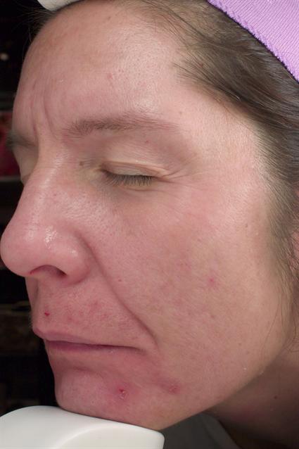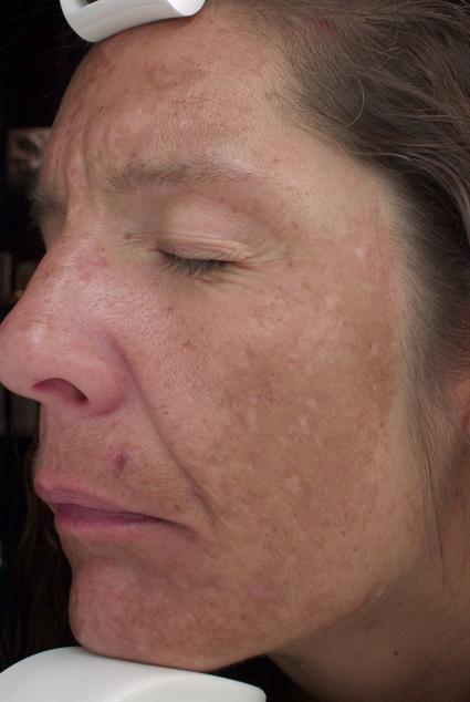 Patient’s face had hyperpigmentation and showed signs of photodamage. Patient went on the Obagi Nu-Derm® system with .025% tretinoin to accelerate cellular turnover, which improved damage in layers of skin. After 6 weeks, patient saw remarkable reduction in spots with progress still continuing. Patient had a HydraFacial™ after 6 weeks and a Sciton® Joule™ micro laser peel at 11 weeks.